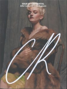 CR’s unique format combines the collectible aspect of a book with the contemporary spirit of a carefully curated fashion magazine. Each issue explores a given seasonal theme through immersive fashion spreads and long-form essays, interviews, poems, and lyrics. CR abides by no preconceived format, audaciously inventing and reinventing itself with each issue.
