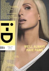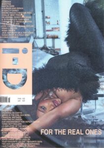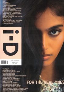 ID is a British, bimonthly magazine in dedication to fashion, music, and art founded in 1980 by designer and former Vogue art director, Terry Jones. Terry Jones came up with the brand’s identity, i-D, and revealed it as a wink – when looking at it with your head tilted – it has become an integral aspect, thus, is printed on each front cover as the logo and with cover stars as a graphic representation of the logo. Consequently, every cover, except one, across the 35 years and over 300 covers have comprised a winking cover star. Each of these 300 + covers have included models, musicians, actors, designers, and personalities have displayed a bold wink. The world’s fashion elite have given an i-D wink, from individuals such as Tom Ford, Chloë, Naomi Campbell, Lil’ Kim, and Kate Moss.