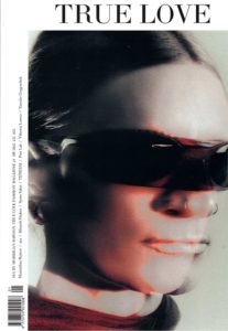 « The designer, stylist, model, MUA and hair stylist all work as artists, alongside the photographer and those who assist. True Love is a magazine for those who adore this colourful, beguiling, ever-enchanting train of creativity, that hasn’t ceased to inspire me since I bought my first issue of i-D with Amber Valletta on the cover in 1999, and The Face, with Lauryn Hill and the Fugees on a school trip in 1996. The meaning of True Love for me is authenticity and constancy in the face of a creative world engulfed by a new tide of investment groups calculating how magazines should be, feeding the results of their research back to the objects of their research in the same way that AI reprocesses images. The results are often haunted and empty. Here the visions are true, in the sense of being real, and thus often challenging, like all forms of love. If you know the pleasure of surveying a table of bloodied plates in the colonnade of the Jardin de Palais Royal, with stained Bordeaux labels, ash collecting in an empty, syrup-smelling demitasse; if you’ve searched for a rare photobook, back issue, band T-shirt or Prada pouch for hours across town, in London Town, any town; if you can’t explain why seeing heavy ultramarine fabrics hanging over glittering pastel tights, the gleam of obsidian patent leather shoes and a tactile gold buckle pinging on the tang, while the model stares at dreams off-page, brewing like a storm, sets your mind ablaze – but you’ll settle for looking – then chances are you’ve found True Love. »